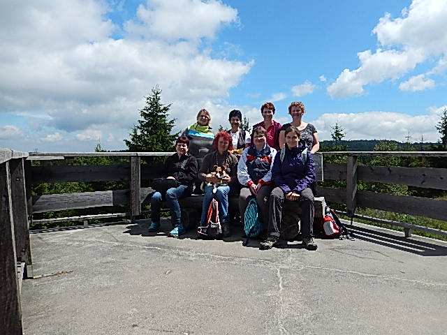 Gegen 10 Uhr trafen wir uns alle in Mühlleithen auf dem Parkplatz bei der Sommerrodelbahn. Nach dem wir alle unsere Parkscheine eingelöst haben ging es los. Mit voller Elan liefen wir dem Wald entgegen und genossen die frische Luft des Waldes und dem Sonnenschein. Von hier aus ging es weiter zu dem Topasfelsen Schneckenstein. Dort stärkten wir uns etwas und spielten mit dem einzigen männlichen Teilnehmer (Ludwig Zierold) eine Runde Stockwerfen und mit den Bällen.